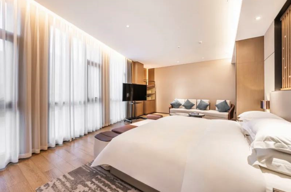 酒店为宾客提供精细多样化的入住体验,客房布置温馨典雅,选用国际品牌床垫,打造一流的睡眠质量,房间内设独立卫浴、洗漱用品全部为大品牌,LED液晶电视、高速网络接口、全wifi覆盖等一应俱全,透过全景落地玻璃窗,江河山峦不同风格的醉人精致尽收眼底。